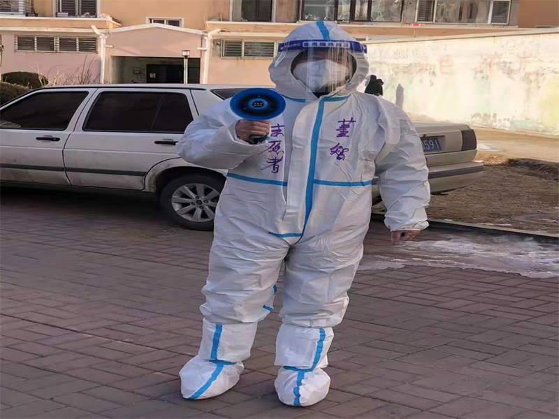 戰(zhàn)“疫”工作中,打通服務(wù)保障“最后一百米”最大的難題是人手不夠,社區(qū)是疫情防控的第一道防線。按照防疫工作要求,董智居住的青青家園小區(qū)實行封鎖管理。居家辦公的董智看到社區(qū)工作者開展疫情防控工作,一人身兼數(shù)職,他看在眼里急在心里,主動請纓加入社區(qū)志愿者隊伍。2月20日凌晨4-6點(diǎn),董智參加對實行封閉管控的單元執(zhí)勤站崗,在單元門外臨時搭建的鐵皮簡易房內(nèi),一絲不茍、恪盡職守,用自己的實際行動執(zhí)行著疫情防控工作的要求,守護(hù)著小區(qū)群眾的生命安全和身體健康。21日一早,董智就穿好防護(hù)服來到小區(qū)核酸檢測現(xiàn)場。在采樣開始前,通過小喇叭告知大家間隔一米安全線、掃碼測體溫、認(rèn)真聽從工作人員的指導(dǎo),組織大家有序排隊,助力安全完成了本小區(qū)的取樣檢測。除此之外,董智還幫助小區(qū)居民分發(fā)政府發(fā)放的蔬菜等生活物品,協(xié)助社區(qū)工作人員完成日常防疫工作,每天回到家里,都疲憊不堪,但第二天又滿血復(fù)活走向抗疫的“戰(zhàn)場”。董智說:“報名做志愿者時沒有別的想法,就是想為抗擊疫情出一份力,為奮戰(zhàn)在抗疫一線的社區(qū)工作人員提供一份幫助,作為小區(qū)的居民,作為一名共產(chǎn)黨員,也應(yīng)該起到良好的帶頭作用,共同打贏這場疫情防控戰(zhàn)”。