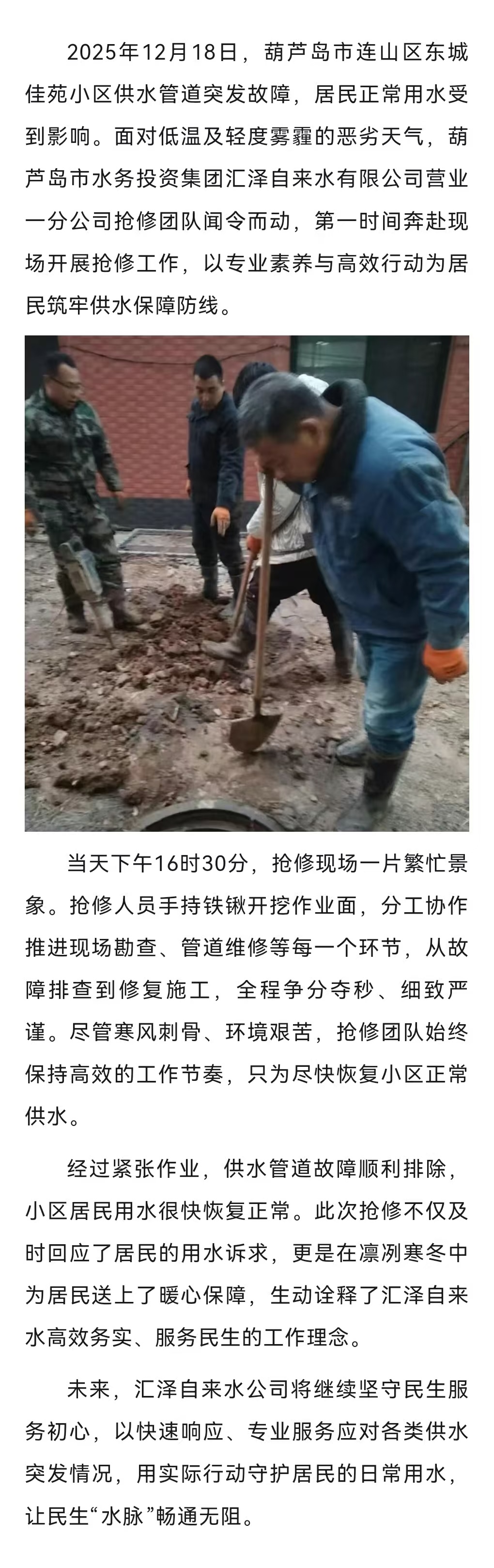 寒冬搶修 速解居民用水難題
