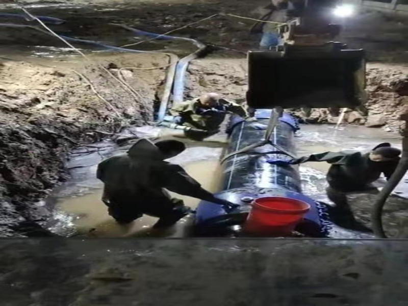 4月18日下午四時左右,工程公司接到工單,位于北港工業(yè)園區(qū)新興鋼管廠墻外出現(xiàn)漏點(diǎn)。該管線供水區(qū)域?yàn)楸备酃I(yè)園區(qū)和打漁山開發(fā)區(qū)。維修人員到達(dá)現(xiàn)場后發(fā)現(xiàn),造成此處漏點(diǎn)的管線為PE630管線,爆管長度達(dá)4.5米。由于此路段沒有下水,路面積水深度達(dá)30厘米。自來水公司經(jīng)理李文生、副經(jīng)理馬旭、周小勇得知此事后,責(zé)令工程公司全力以赴組織搶修。