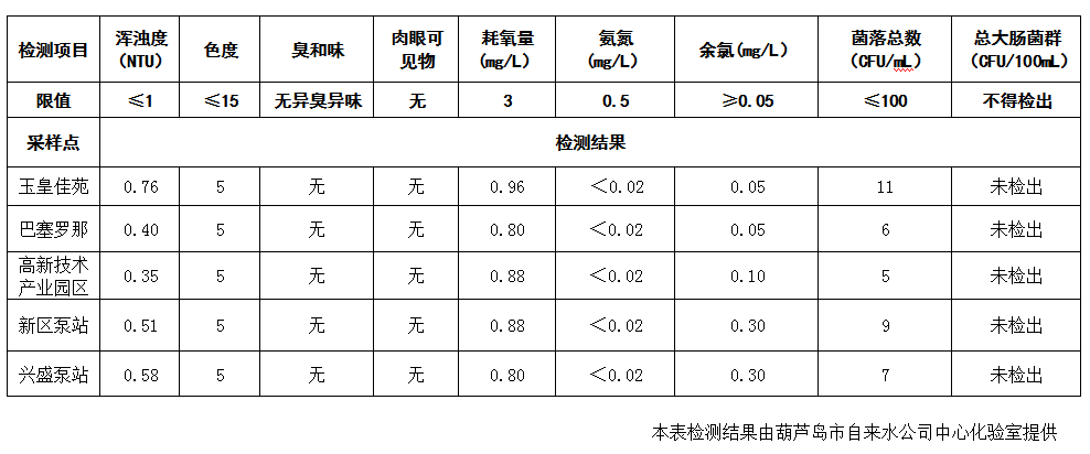 2017年3月8日葫蘆島市城市供水管網(wǎng)水質(zhì)信息