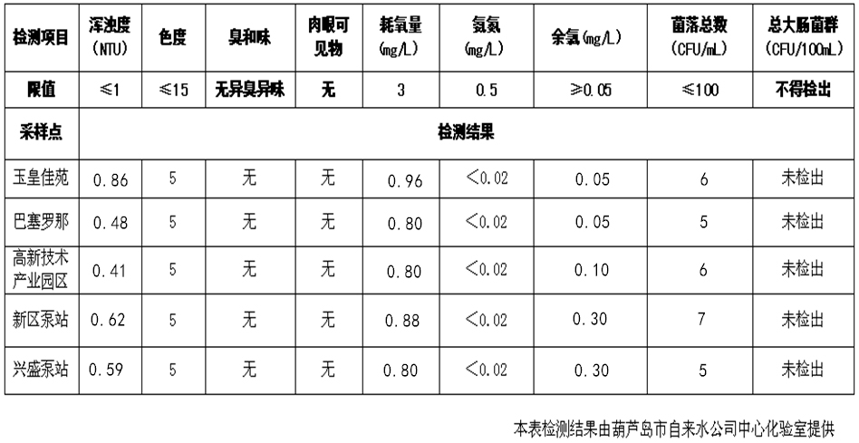 2017年2月15日葫蘆島市城市供水管網(wǎng)水質(zhì)信息