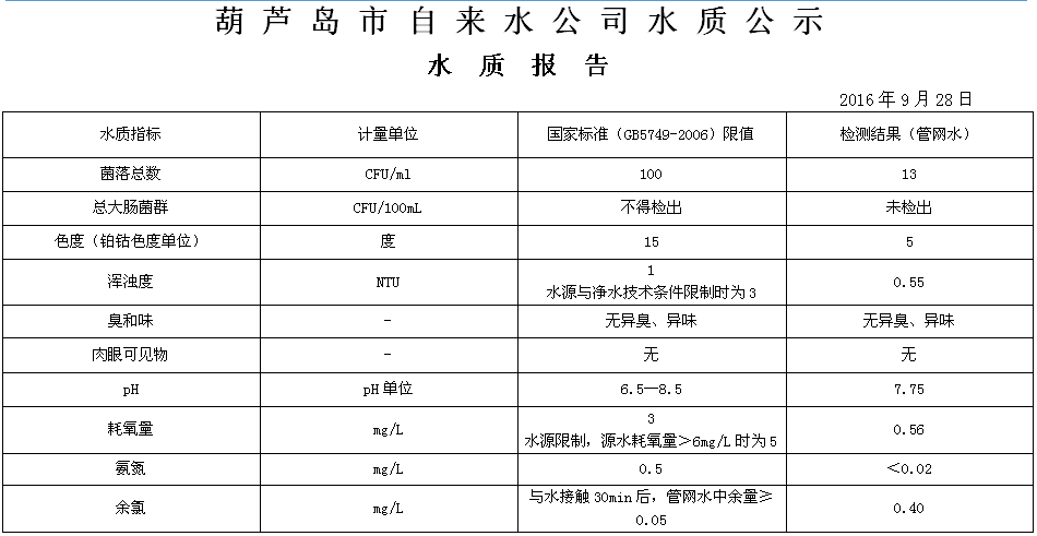 2016年9月第四周 水質報告