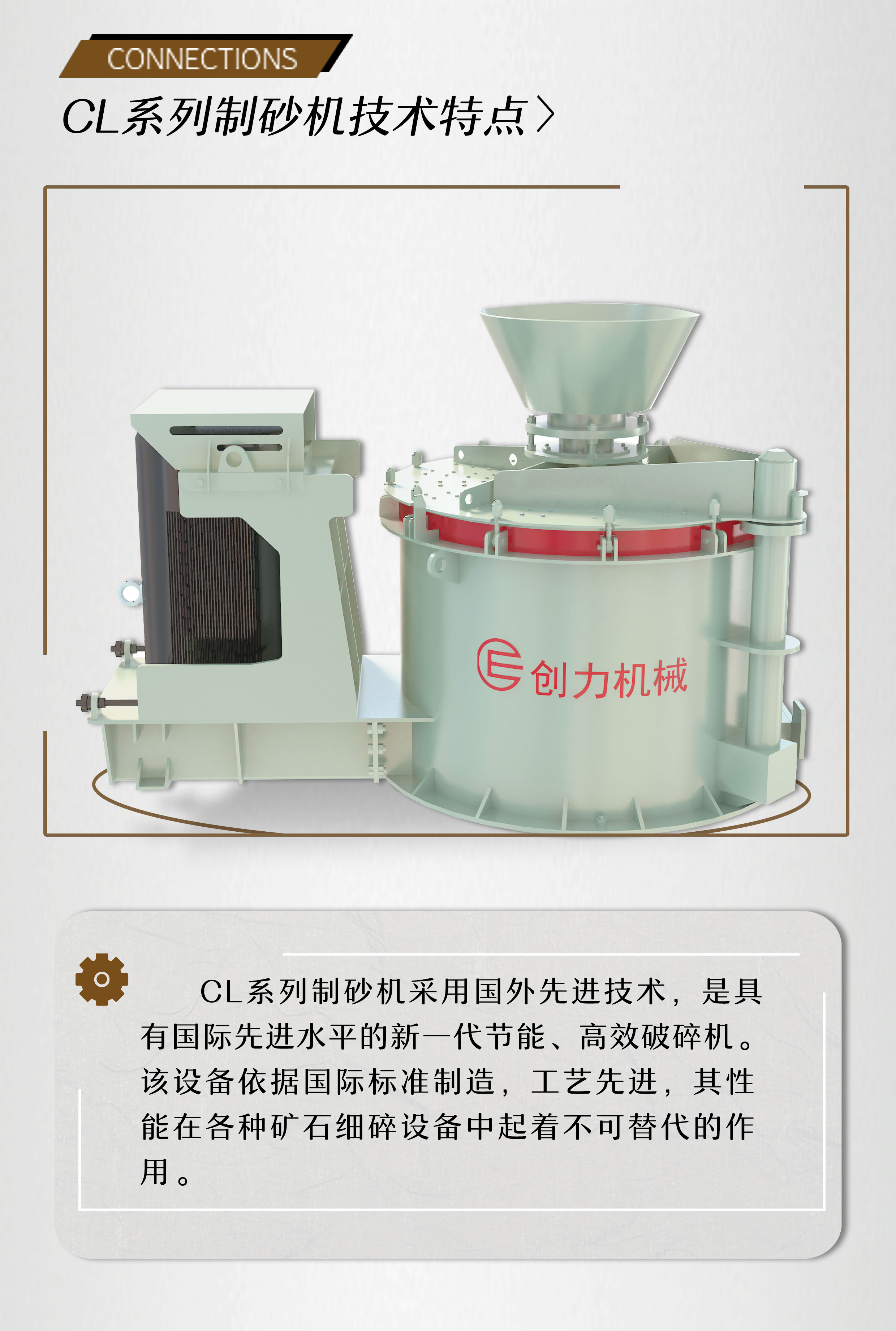 CL系列制砂機(jī)是在運(yùn)用國外先進(jìn)技術(shù),具有國際先進(jìn)水平的新一代節(jié)能、高效破碎機(jī)。該設(shè)備依據(jù)國際標(biāo)準(zhǔn)制造,工藝先進(jìn),其性能在各種礦石細(xì)碎設(shè)備中起著不可替代的作用。